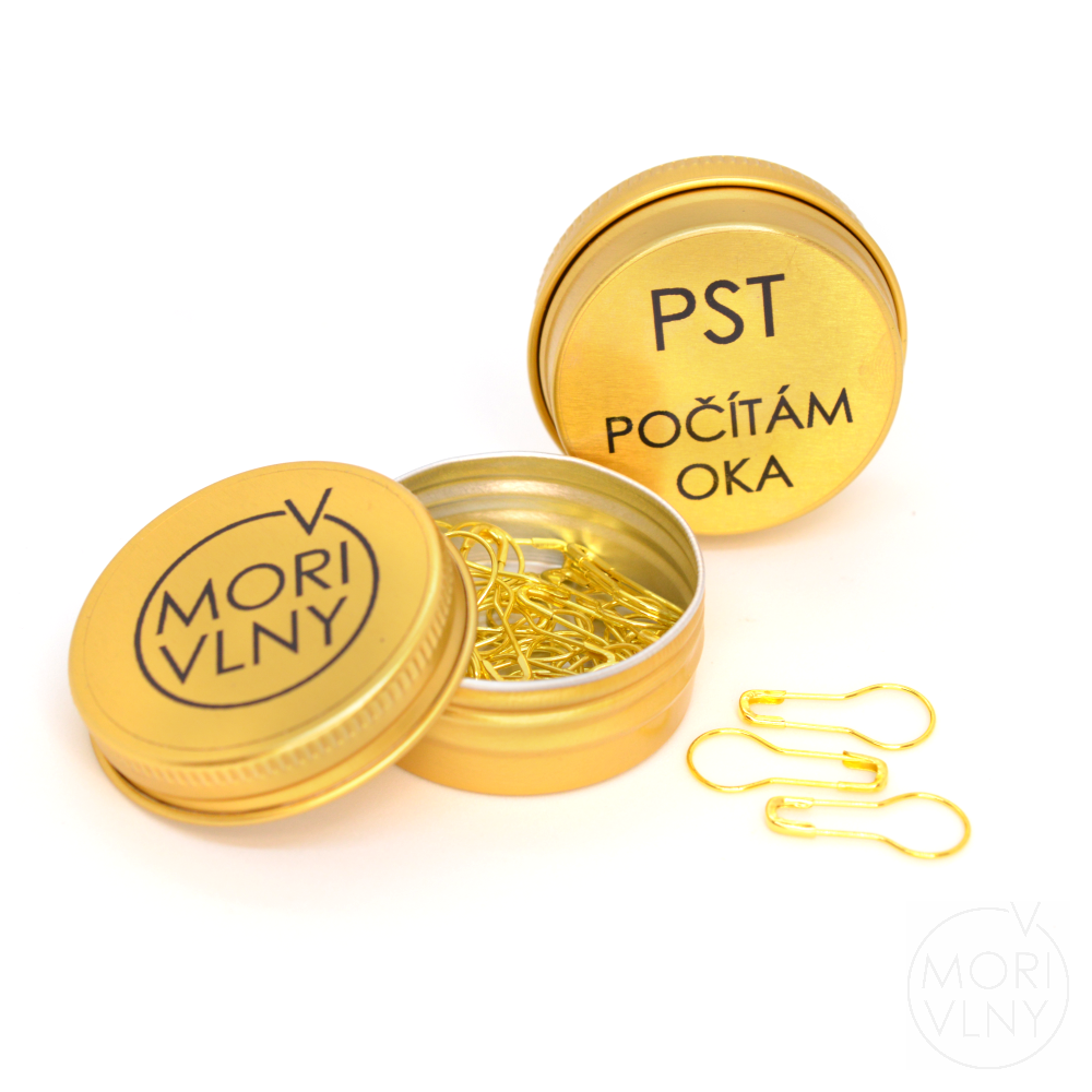 Sada 40 ks zlatých, černých nebo stříbrných kovových odepínacích značkovačů v plechové dóze.